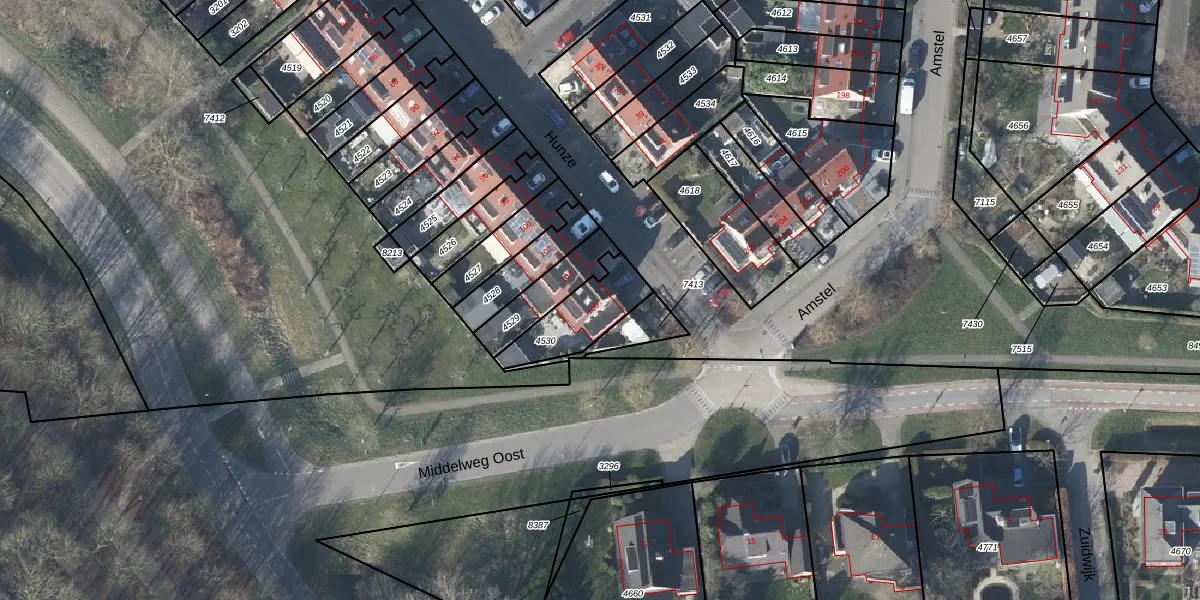 Het perceel waarop Hunze 106 staat heeft een oppervlakte van 195 m². Dit is een middelgroot perceel. De perceeloppervlakte wordt geregistreerd door het Kadaster. Gedetailleerde informatie over de maten van dit perceel kunt u vinden in het rapport Kadastrale kaart met maatvoering van Hunze 106.