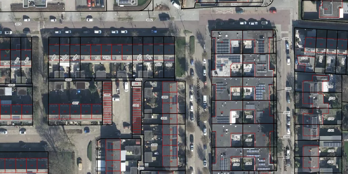 Jacob van Ruisdaelstraat 14 is gelegen op kadastraal perceel WIJ01E3090. Deze kadastrale aanduiding is uniek en wordt gebruikt door het Kadaster om eigendomsrechten en andere zakelijke rechten vast te leggen. Het perceel maakt onderdeel uit van de kadastrale gemeente Wijk bij Duurstede.