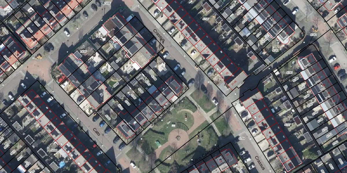 Gebruik de zoekbalk of klik op een perceel voor informatie over de adressen binnen dit perceel.