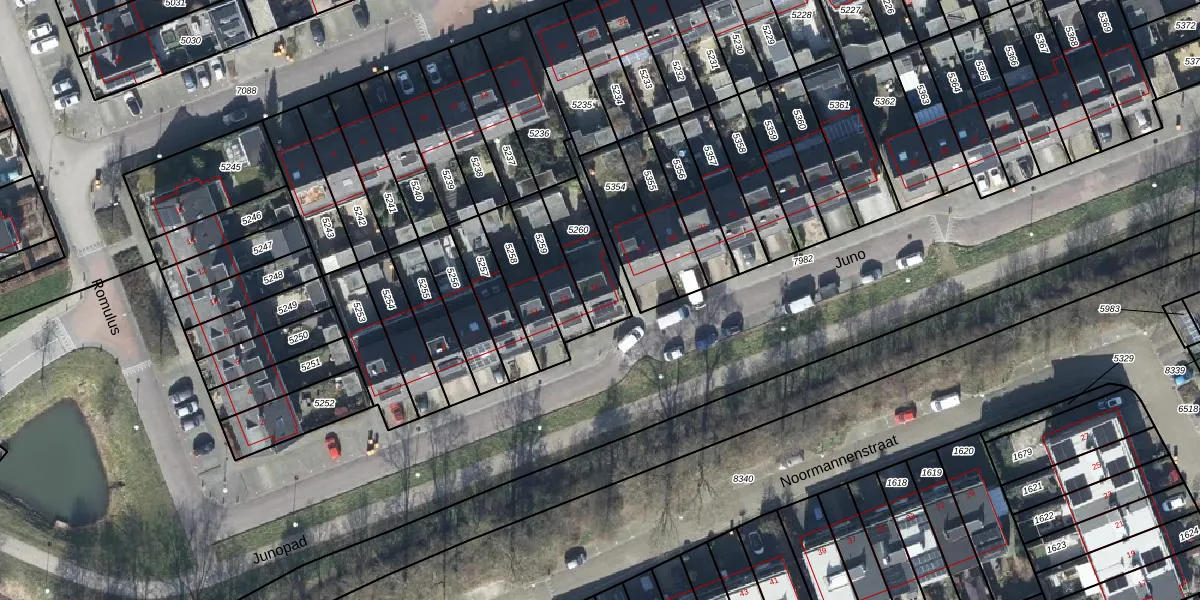 Het perceel waarop Juno 15 staat heeft een oppervlakte van 170 m². Dit is een middelgroot perceel. De perceeloppervlakte wordt geregistreerd door het Kadaster. Gedetailleerde informatie over de maten van dit perceel kunt u vinden in het rapport Kadastrale kaart met maatvoering van Juno 15.