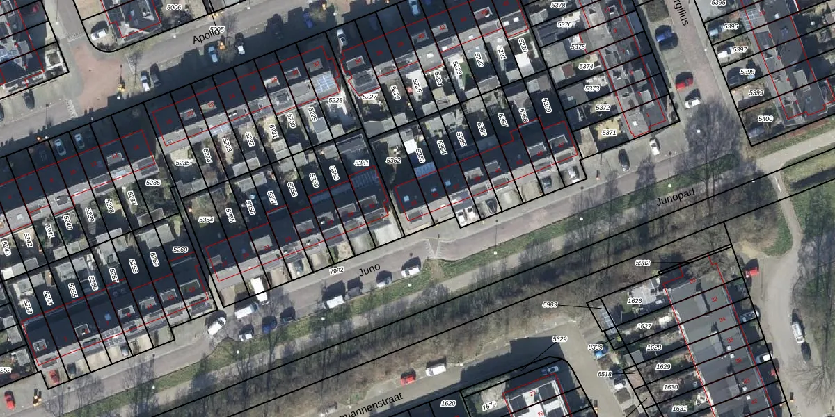 Het perceel waarop Juno 33 staat heeft een oppervlakte van 190 m². Dit is een middelgroot perceel. De perceeloppervlakte wordt geregistreerd door het Kadaster. Gedetailleerde informatie over de maten van dit perceel kunt u vinden in het rapport Kadastrale kaart met maatvoering van Juno 33.