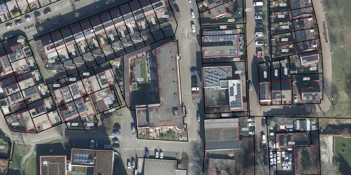 Het perceel waarop Karel de Grotestraat 26-04 staat heeft een oppervlakte van 1665 m². Dit is een zeer groot perceel. De perceeloppervlakte wordt geregistreerd door het Kadaster. Gedetailleerde informatie over de maten van dit perceel kunt u vinden in het rapport Kadastrale kaart met maatvoering van Karel de Grotestraat 26-04.
