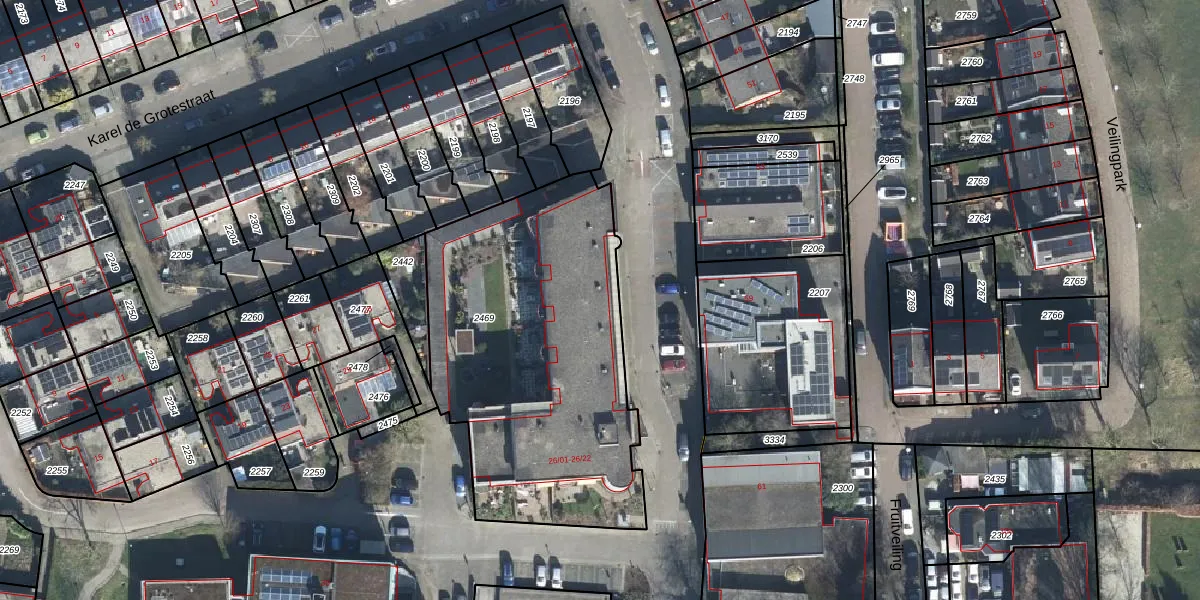 Karel de Grotestraat 26-05 is gelegen op kadastraal perceel WIJ01E2469. Deze kadastrale aanduiding is uniek en wordt gebruikt door het Kadaster om eigendomsrechten en andere zakelijke rechten vast te leggen. Het perceel maakt onderdeel uit van de kadastrale gemeente Wijk bij Duurstede.