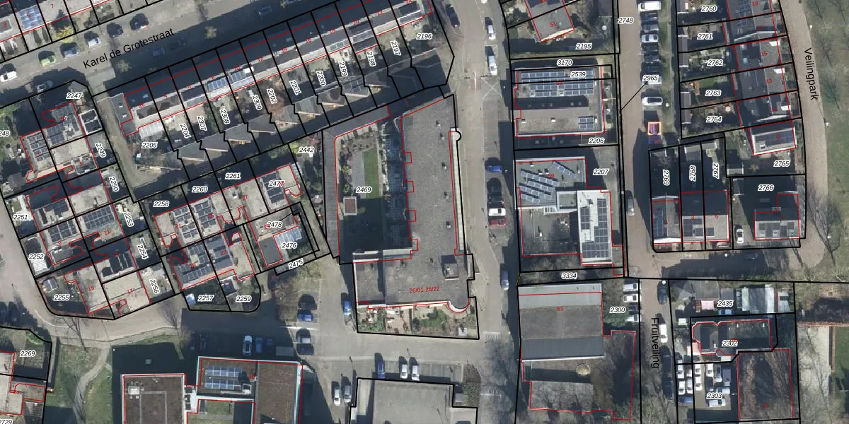 Het perceel waarop Karel de Grotestraat 26-19 staat heeft een oppervlakte van 1665 m². Dit is een zeer groot perceel. De perceeloppervlakte wordt geregistreerd door het Kadaster. Gedetailleerde informatie over de maten van dit perceel kunt u vinden in het rapport Kadastrale kaart met maatvoering van Karel de Grotestraat 26-19.