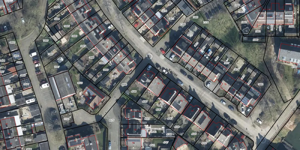 Het perceel waarop Keizer 60 staat heeft een oppervlakte van 250 m². Dit is een middelgroot perceel. De perceeloppervlakte wordt geregistreerd door het Kadaster. Gedetailleerde informatie over de maten van dit perceel kunt u vinden in het rapport Kadastrale kaart met maatvoering van Keizer 60.