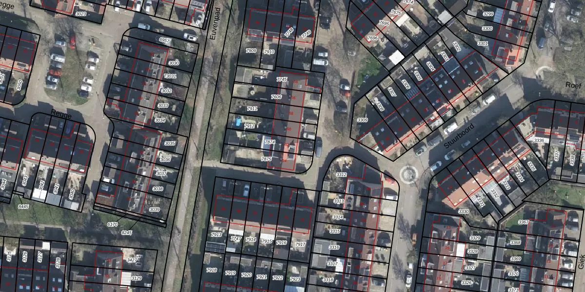 Gebruik de zoekbalk of klik op een perceel voor informatie over de adressen binnen dit perceel.