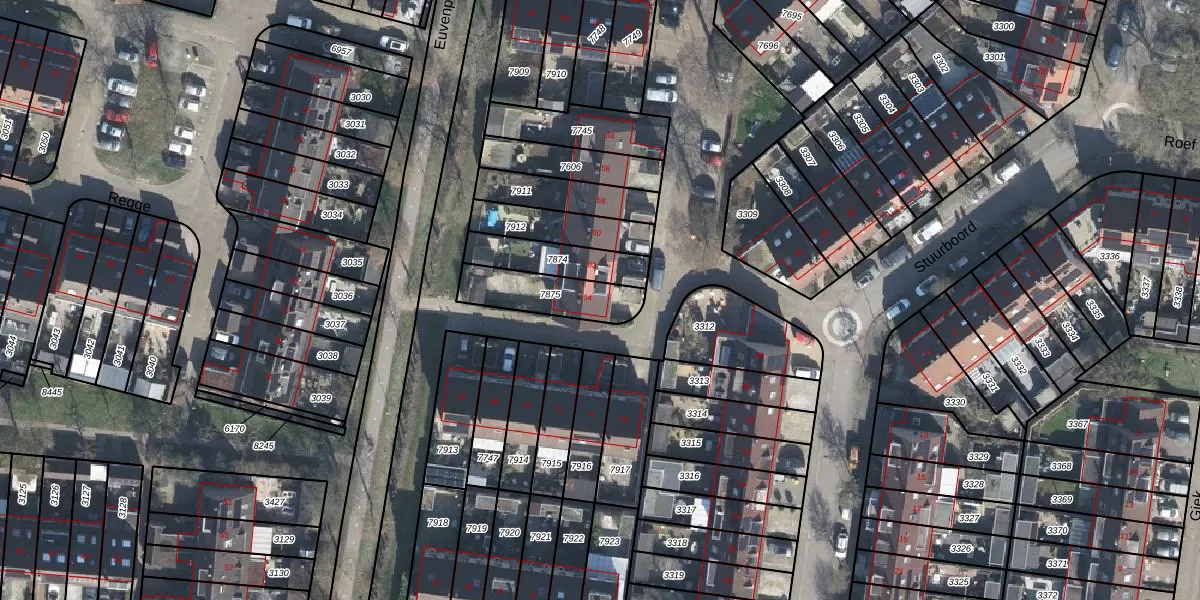 Gebruik de zoekbalk of klik op een perceel voor informatie over de adressen binnen dit perceel.