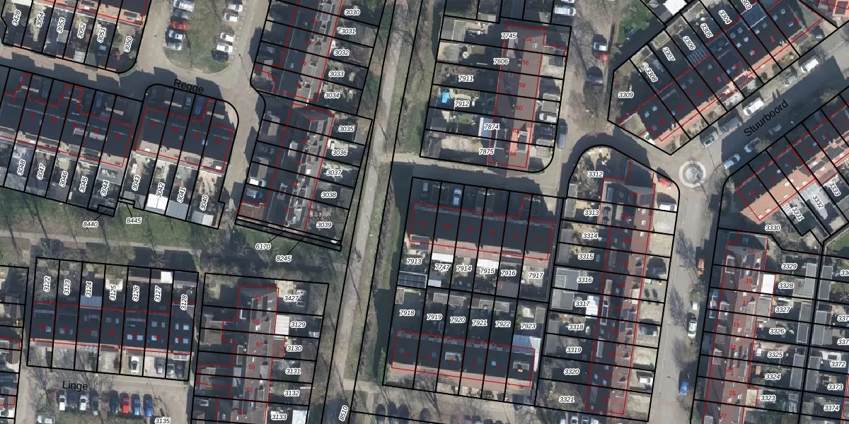 Gebruik de zoekbalk of klik op een perceel voor informatie over de adressen binnen dit perceel.