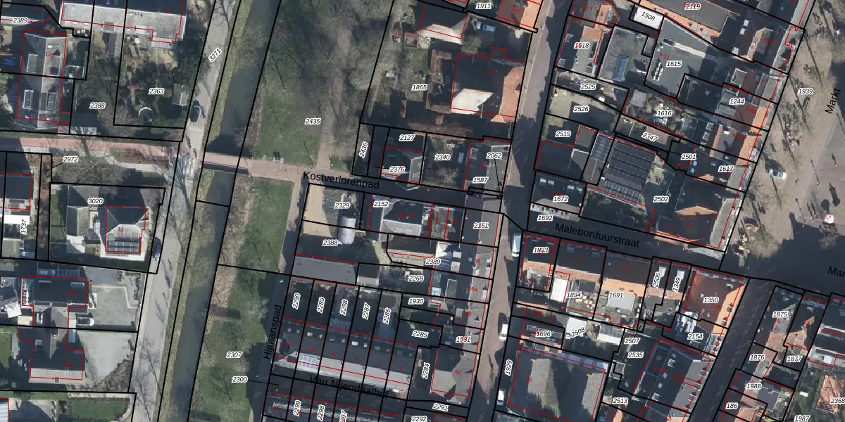 Kostverlorenpad 1-c is gelegen op kadastraal perceel WIJ01B2152. Deze kadastrale aanduiding is uniek en wordt gebruikt door het Kadaster om eigendomsrechten en andere zakelijke rechten vast te leggen. Het perceel maakt onderdeel uit van de kadastrale gemeente Wijk bij Duurstede.