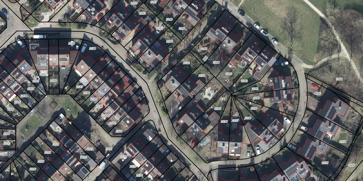 Het perceel waarop Kruisbessengaard 21 staat heeft een oppervlakte van 319 m². Dit is een groot perceel. De perceeloppervlakte wordt geregistreerd door het Kadaster. Gedetailleerde informatie over de maten van dit perceel kunt u vinden in het rapport Kadastrale kaart met maatvoering van Kruisbessengaard 21.