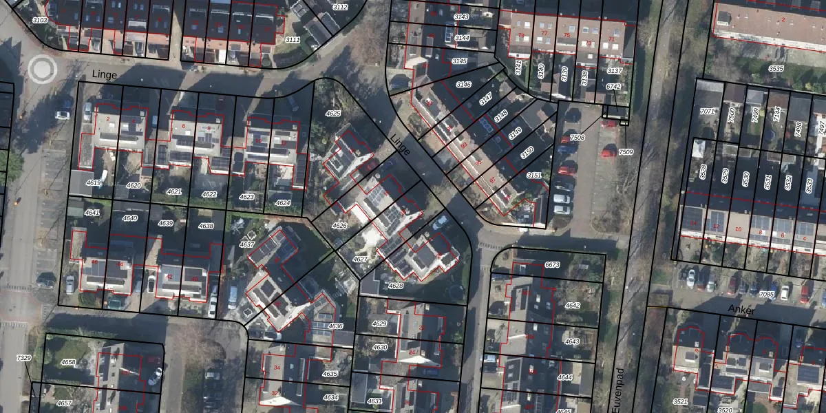 Gebruik de zoekbalk of klik op een perceel voor informatie over de adressen binnen dit perceel.