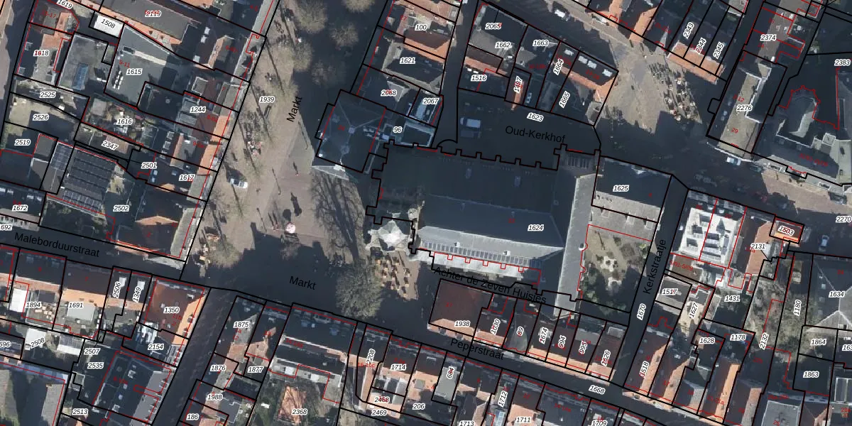 Het perceel waarop Markt 22 staat heeft een oppervlakte van 1655 m². Dit is een zeer groot perceel. De perceeloppervlakte wordt geregistreerd door het Kadaster. Gedetailleerde informatie over de maten van dit perceel kunt u vinden in het rapport Kadastrale kaart met maatvoering van Markt 22.