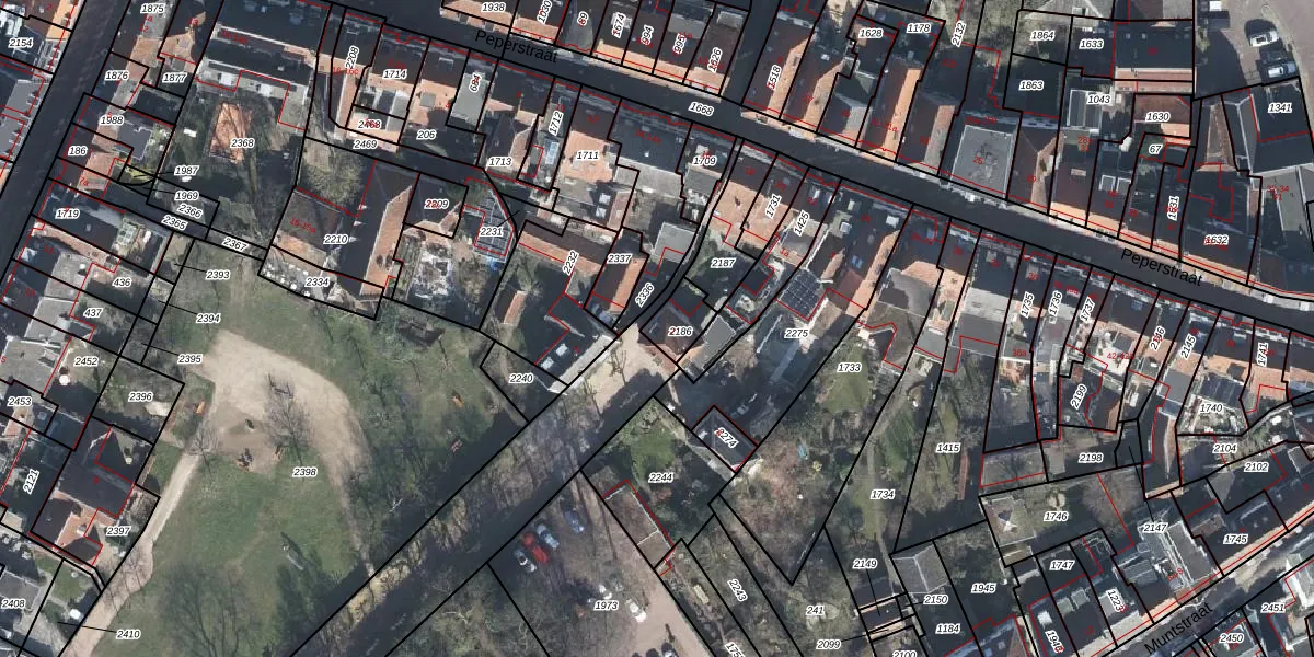 Gebruik de zoekbalk of klik op een perceel voor informatie over de adressen binnen dit perceel.