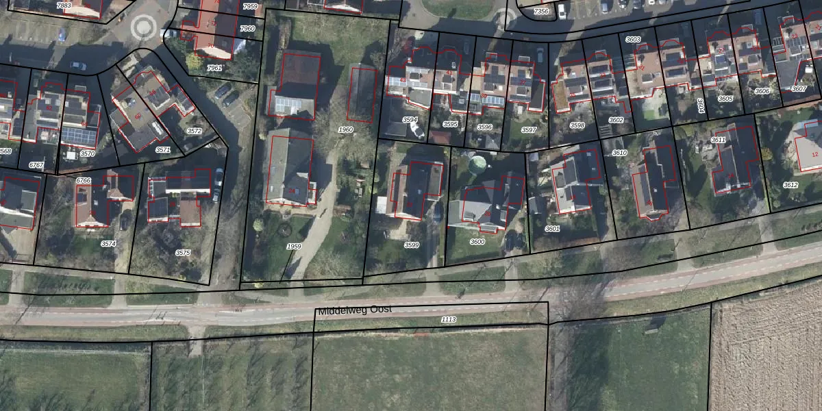 Middelweg Oost 22 is gelegen op kadastraal perceel WIJ01C3599. Deze kadastrale aanduiding is uniek en wordt gebruikt door het Kadaster om eigendomsrechten en andere zakelijke rechten vast te leggen. Het perceel maakt onderdeel uit van de kadastrale gemeente Wijk bij Duurstede.