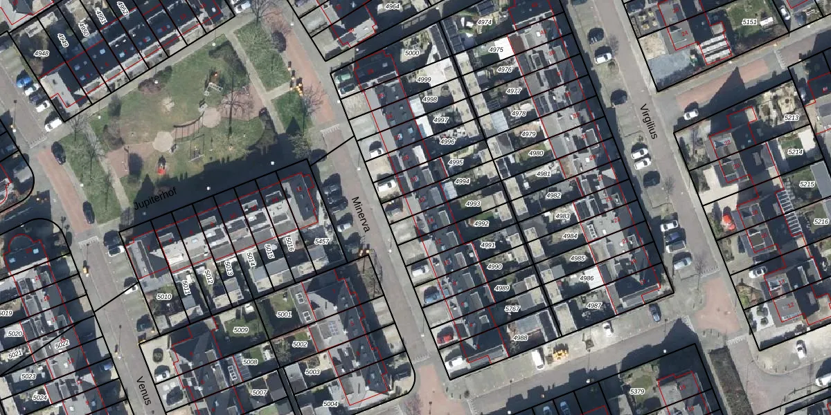Het perceel waarop Minerva 16 staat heeft een oppervlakte van 157 m². Dit is een middelgroot perceel. De perceeloppervlakte wordt geregistreerd door het Kadaster. Gedetailleerde informatie over de maten van dit perceel kunt u vinden in het rapport Kadastrale kaart met maatvoering van Minerva 16.