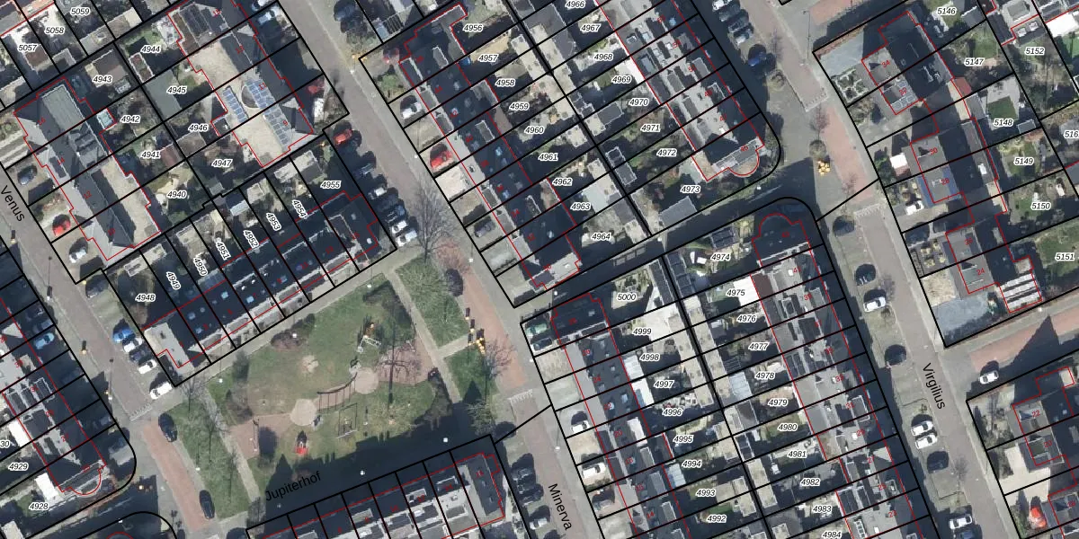 Het perceel waarop Minerva 30 staat heeft een oppervlakte van 224 m². Dit is een middelgroot perceel. De perceeloppervlakte wordt geregistreerd door het Kadaster. Gedetailleerde informatie over de maten van dit perceel kunt u vinden in het rapport Kadastrale kaart met maatvoering van Minerva 30.