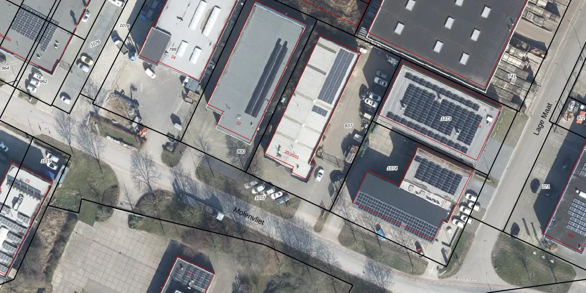 Het perceel waarop Molenvliet 20 staat heeft een oppervlakte van 1785 m². Dit is een zeer groot perceel. De perceeloppervlakte wordt geregistreerd door het Kadaster. Gedetailleerde informatie over de maten van dit perceel kunt u vinden in het rapport Kadastrale kaart met maatvoering van Molenvliet 20.
