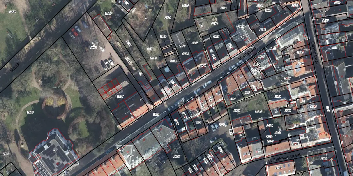 Het perceel waarop Muntstraat 24 staat heeft een oppervlakte van 84 m². Dit is een klein perceel. De perceeloppervlakte wordt geregistreerd door het Kadaster. Gedetailleerde informatie over de maten van dit perceel kunt u vinden in het rapport Kadastrale kaart met maatvoering van Muntstraat 24.