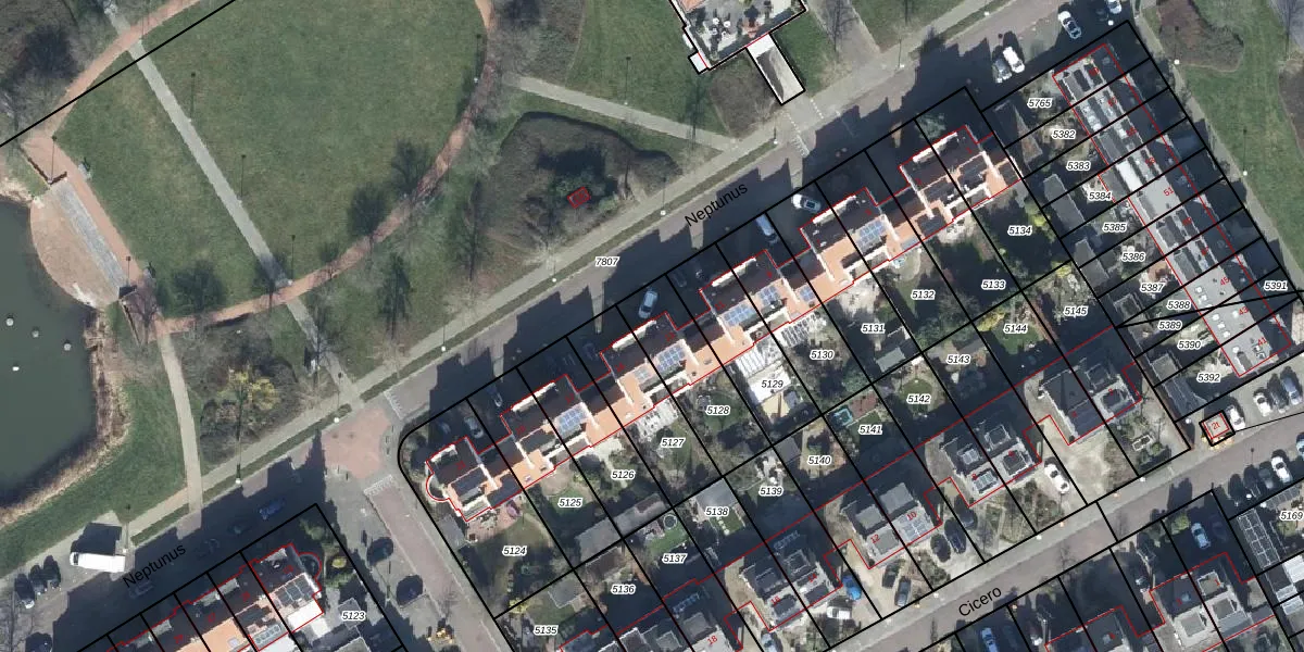Het perceel waarop Neptunus 13 staat heeft een oppervlakte van 280 m². Dit is een middelgroot perceel. De perceeloppervlakte wordt geregistreerd door het Kadaster. Gedetailleerde informatie over de maten van dit perceel kunt u vinden in het rapport Kadastrale kaart met maatvoering van Neptunus 13.