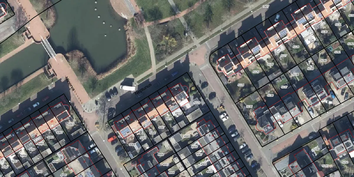 Het perceel waarop Neptunus 23 staat heeft een oppervlakte van 349 m². Dit is een groot perceel. De perceeloppervlakte wordt geregistreerd door het Kadaster. Gedetailleerde informatie over de maten van dit perceel kunt u vinden in het rapport Kadastrale kaart met maatvoering van Neptunus 23.
