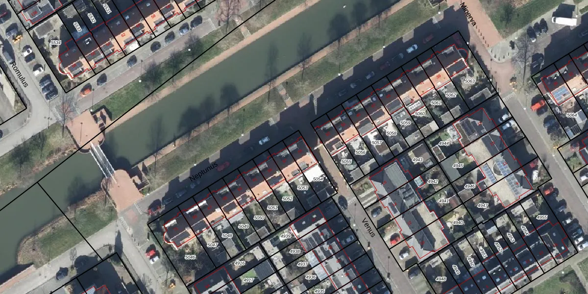 Het perceel waarop Neptunus 55 staat heeft een oppervlakte van 156 m². Dit is een middelgroot perceel. De perceeloppervlakte wordt geregistreerd door het Kadaster. Gedetailleerde informatie over de maten van dit perceel kunt u vinden in het rapport Kadastrale kaart met maatvoering van Neptunus 55.