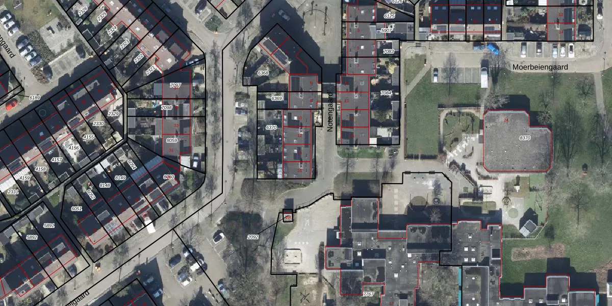 Het perceel waarop Notengaard 14 staat heeft een oppervlakte van 450 m². Dit is een groot perceel. De perceeloppervlakte wordt geregistreerd door het Kadaster. Gedetailleerde informatie over de maten van dit perceel kunt u vinden in het rapport Kadastrale kaart met maatvoering van Notengaard 14.