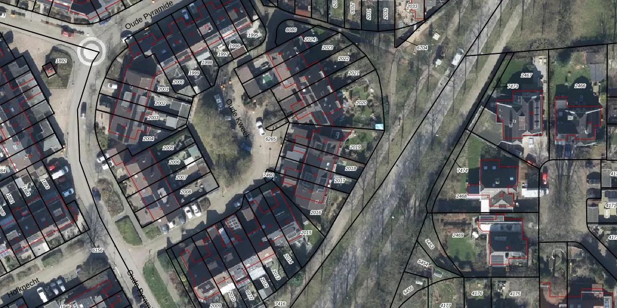 Gebruik de zoekbalk of klik op een perceel voor informatie over de adressen binnen dit perceel.