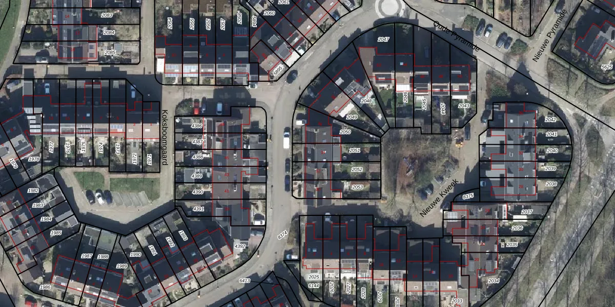 Gebruik de zoekbalk of klik op een perceel voor informatie over de adressen binnen dit perceel.