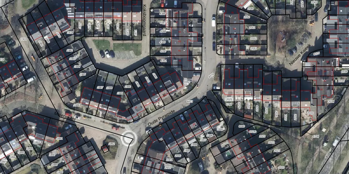 Gebruik de zoekbalk of klik op een perceel voor informatie over de adressen binnen dit perceel.