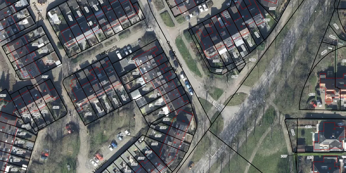 Gebruik de zoekbalk of klik op een perceel voor informatie over de adressen binnen dit perceel.