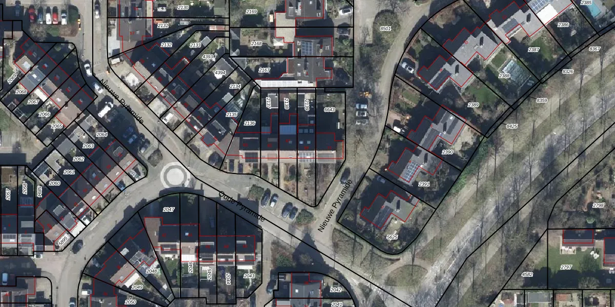 Gebruik de zoekbalk of klik op een perceel voor informatie over de adressen binnen dit perceel.