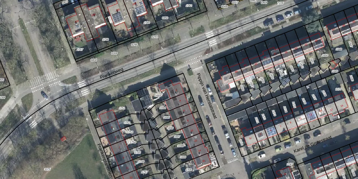 Het perceel waarop Pippijn van Herstalstraat 2 staat heeft een oppervlakte van 325 m². Dit is een groot perceel. De perceeloppervlakte wordt geregistreerd door het Kadaster. Gedetailleerde informatie over de maten van dit perceel kunt u vinden in het rapport Kadastrale kaart met maatvoering van Pippijn van Herstalstraat 2.