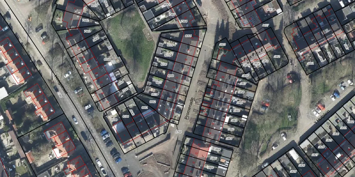 Het perceel waarop Promenade 13 staat heeft een oppervlakte van 136 m². Dit is een middelgroot perceel. De perceeloppervlakte wordt geregistreerd door het Kadaster. Gedetailleerde informatie over de maten van dit perceel kunt u vinden in het rapport Kadastrale kaart met maatvoering van Promenade 13.
