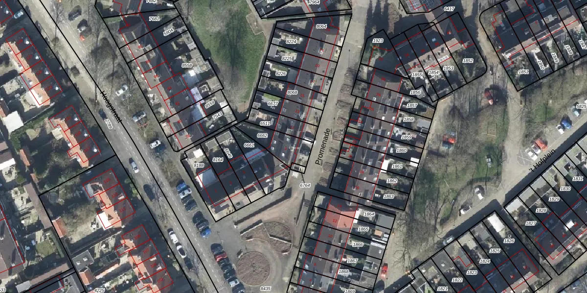 Het perceel waarop Promenade 9 staat heeft een oppervlakte van 188 m². Dit is een middelgroot perceel. De perceeloppervlakte wordt geregistreerd door het Kadaster. Gedetailleerde informatie over de maten van dit perceel kunt u vinden in het rapport Kadastrale kaart met maatvoering van Promenade 9.