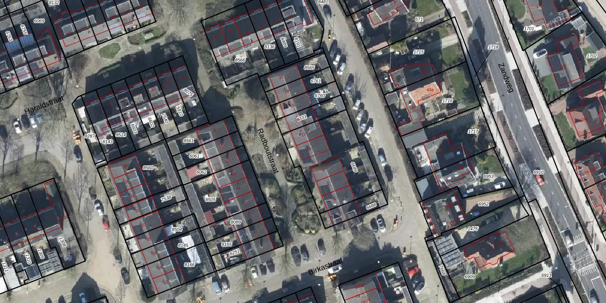 Het perceel waarop Radboutstraat 10 staat heeft een oppervlakte van 643 m². Dit is een groot perceel. De perceeloppervlakte wordt geregistreerd door het Kadaster. Gedetailleerde informatie over de maten van dit perceel kunt u vinden in het rapport Kadastrale kaart met maatvoering van Radboutstraat 10.