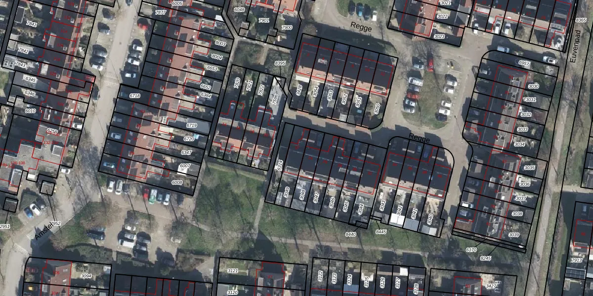 Gebruik de zoekbalk of klik op een perceel voor informatie over de adressen binnen dit perceel.