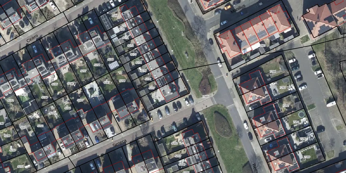 Het perceel waarop Remus 21 staat heeft een oppervlakte van 267 m². Dit is een middelgroot perceel. De perceeloppervlakte wordt geregistreerd door het Kadaster. Gedetailleerde informatie over de maten van dit perceel kunt u vinden in het rapport Kadastrale kaart met maatvoering van Remus 21.