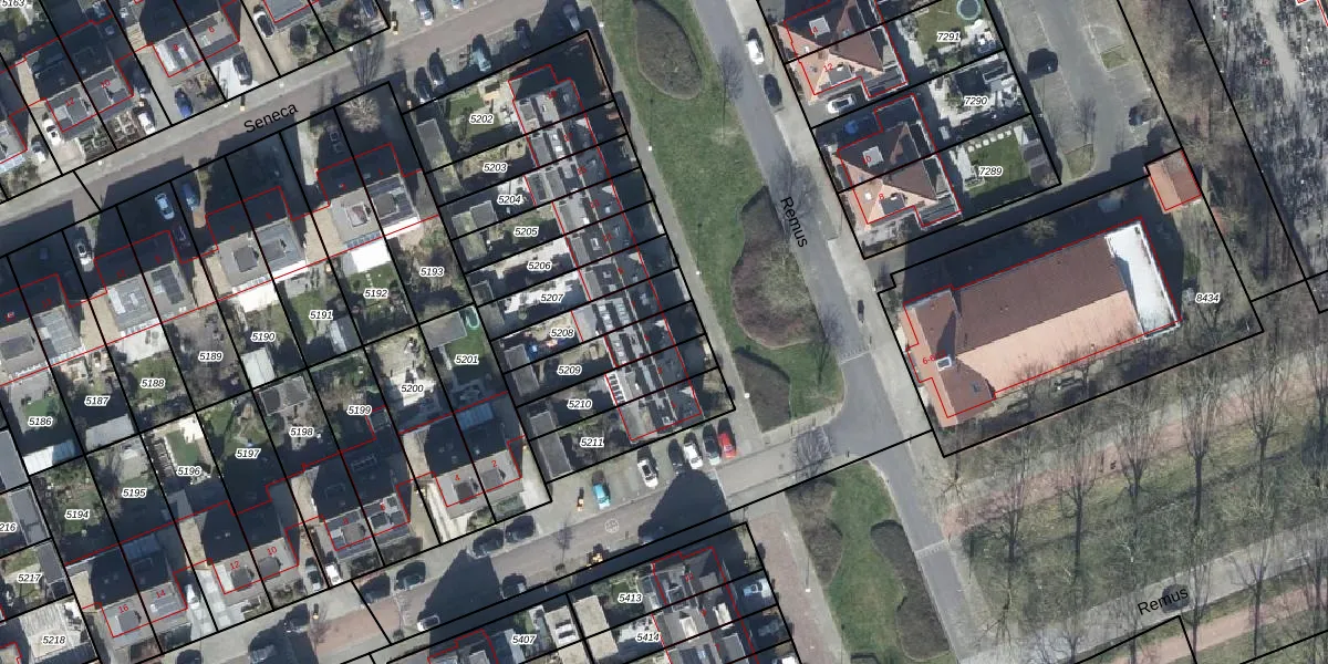 Het perceel waarop Remus 5 staat heeft een oppervlakte van 166 m². Dit is een middelgroot perceel. De perceeloppervlakte wordt geregistreerd door het Kadaster. Gedetailleerde informatie over de maten van dit perceel kunt u vinden in het rapport Kadastrale kaart met maatvoering van Remus 5.