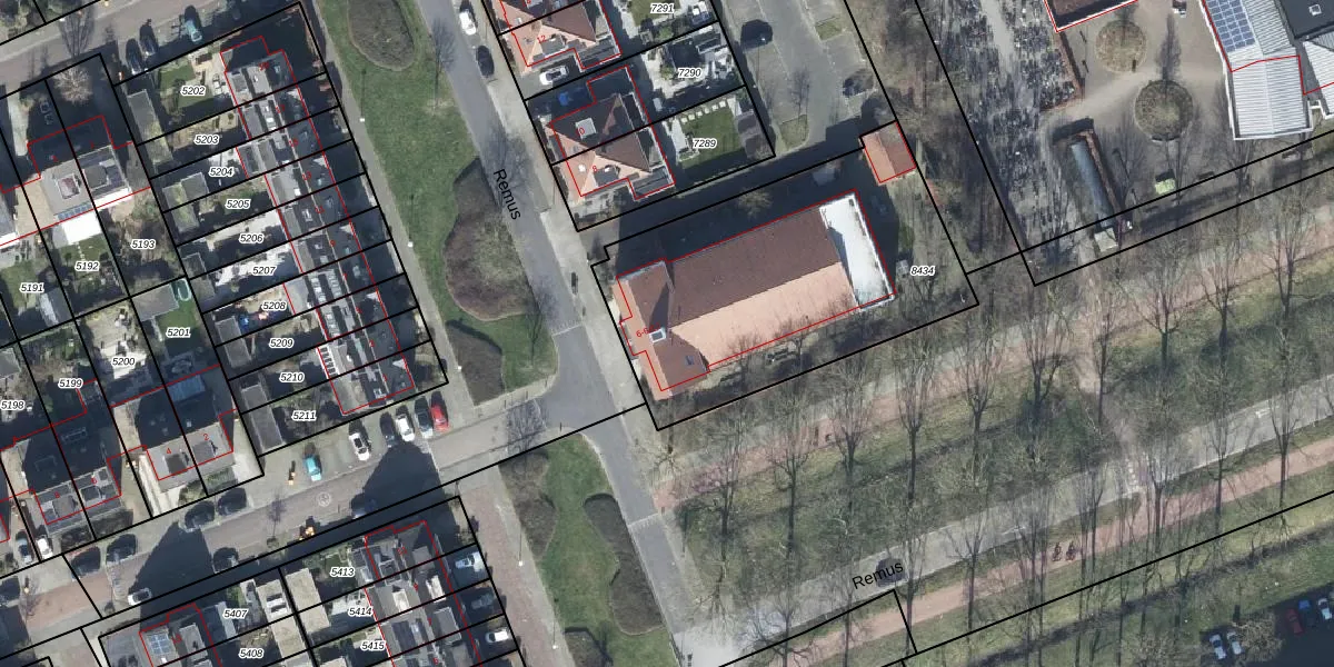 Het perceel waarop Remus 6-06 staat heeft een oppervlakte van 1385 m². Dit is een zeer groot perceel. De perceeloppervlakte wordt geregistreerd door het Kadaster. Gedetailleerde informatie over de maten van dit perceel kunt u vinden in het rapport Kadastrale kaart met maatvoering van Remus 6-06.