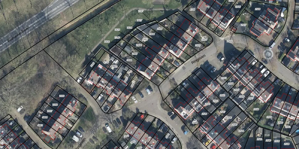 Gebruik de zoekbalk of klik op een perceel voor informatie over de adressen binnen dit perceel.