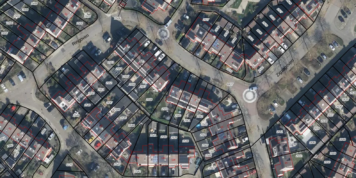 Gebruik de zoekbalk of klik op een perceel voor informatie over de adressen binnen dit perceel.