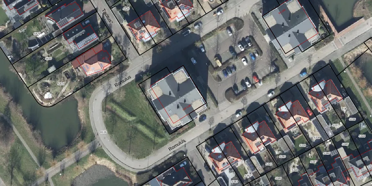 Het perceel waarop Romulus 110 staat heeft een oppervlakte van 743 m². Dit is een groot perceel. De perceeloppervlakte wordt geregistreerd door het Kadaster. Gedetailleerde informatie over de maten van dit perceel kunt u vinden in het rapport Kadastrale kaart met maatvoering van Romulus 110.
