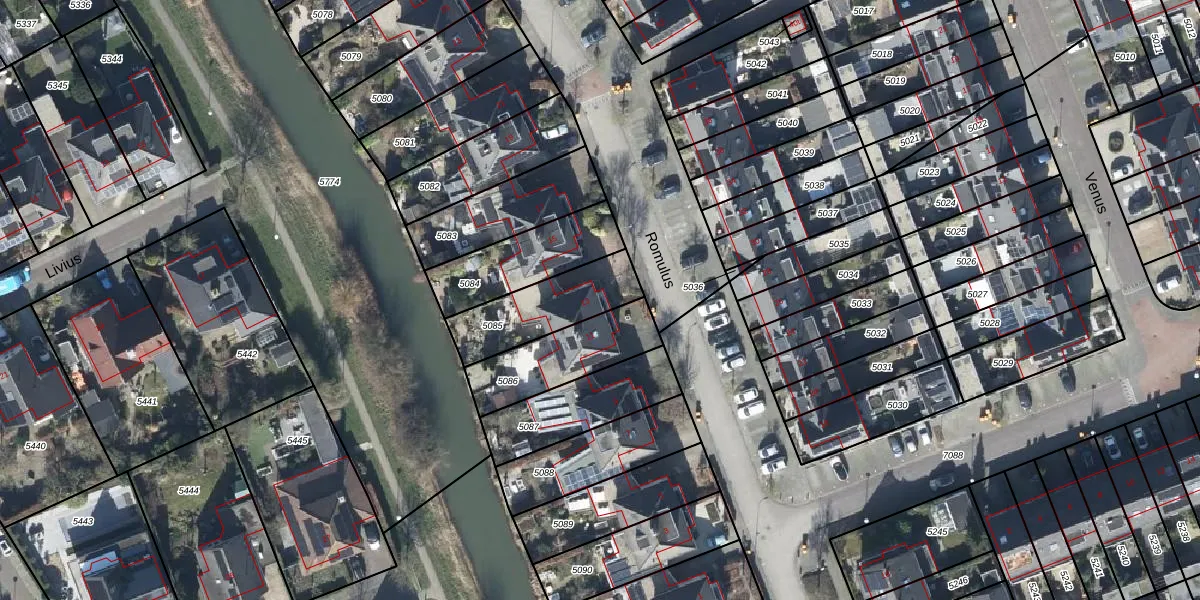 Het perceel waarop Romulus 13 staat heeft een oppervlakte van 280 m². Dit is een middelgroot perceel. De perceeloppervlakte wordt geregistreerd door het Kadaster. Gedetailleerde informatie over de maten van dit perceel kunt u vinden in het rapport Kadastrale kaart met maatvoering van Romulus 13.