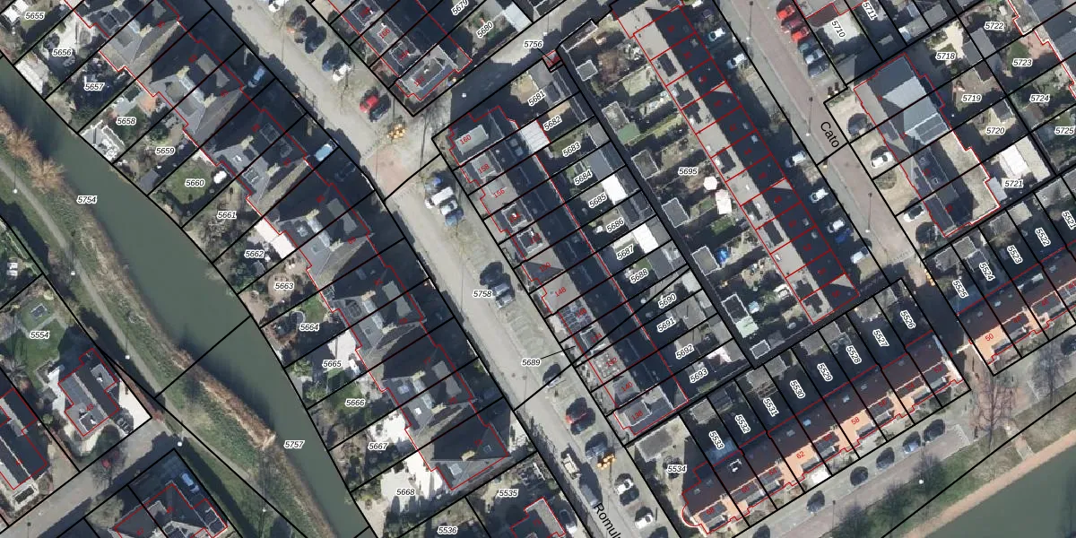 Gebruik de zoekbalk of klik op een perceel voor informatie over de adressen binnen dit perceel.