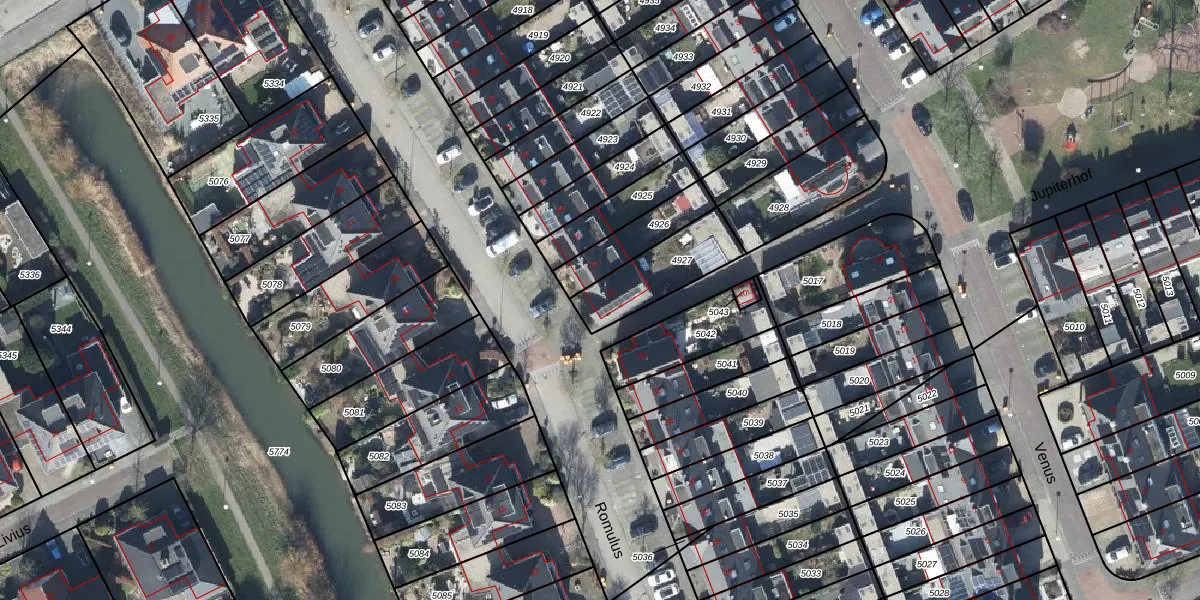 Gebruik de zoekbalk of klik op een perceel voor informatie over de adressen binnen dit perceel.