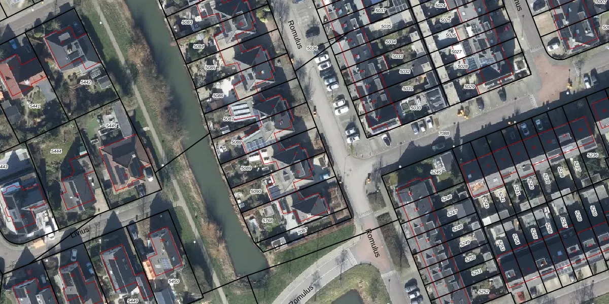 Het perceel waarop Romulus 5 staat heeft een oppervlakte van 295 m². Dit is een middelgroot perceel. De perceeloppervlakte wordt geregistreerd door het Kadaster. Gedetailleerde informatie over de maten van dit perceel kunt u vinden in het rapport Kadastrale kaart met maatvoering van Romulus 5.