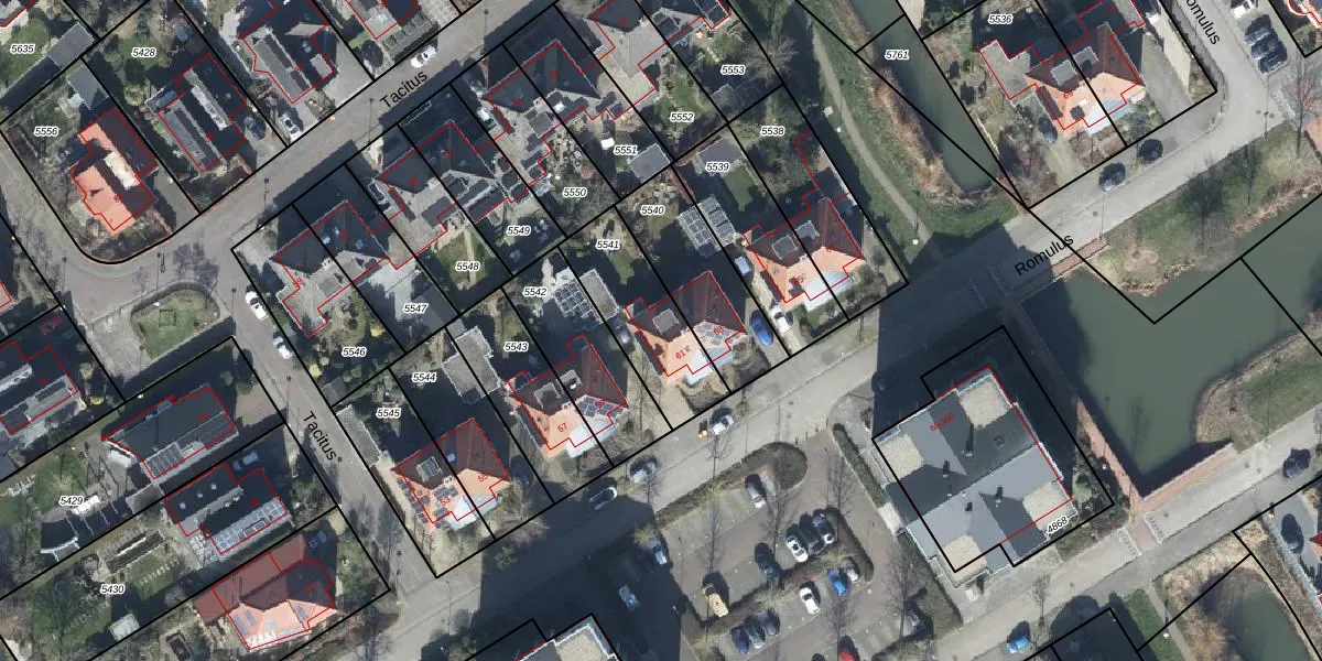Het perceel waarop Romulus 61 staat heeft een oppervlakte van 350 m². Dit is een groot perceel. De perceeloppervlakte wordt geregistreerd door het Kadaster. Gedetailleerde informatie over de maten van dit perceel kunt u vinden in het rapport Kadastrale kaart met maatvoering van Romulus 61.
