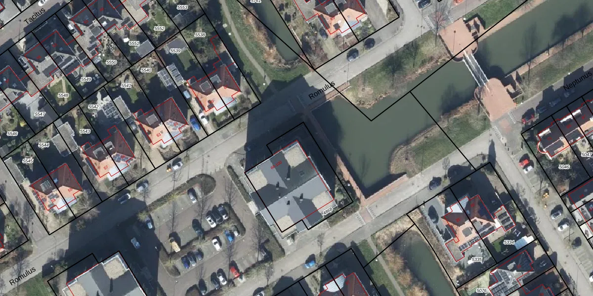 Het perceel waarop Romulus 66 staat heeft een oppervlakte van 743 m². Dit is een groot perceel. De perceeloppervlakte wordt geregistreerd door het Kadaster. Gedetailleerde informatie over de maten van dit perceel kunt u vinden in het rapport Kadastrale kaart met maatvoering van Romulus 66.