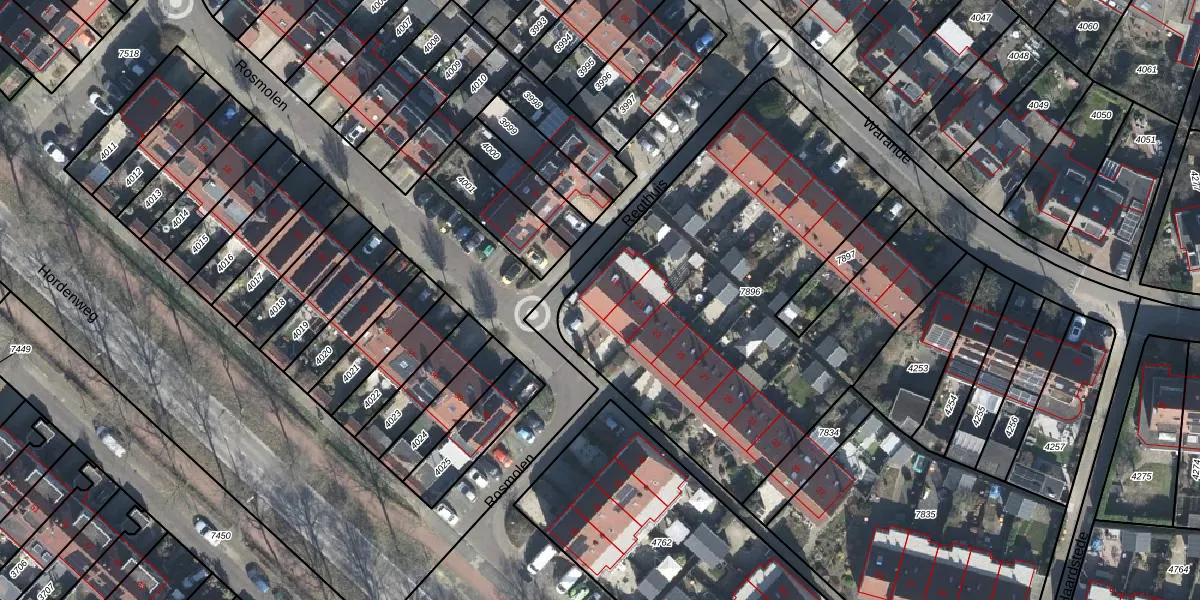 Het perceel waarop Rosmolen 19 staat heeft een oppervlakte van 2310 m². Dit is een zeer groot perceel. De perceeloppervlakte wordt geregistreerd door het Kadaster. Gedetailleerde informatie over de maten van dit perceel kunt u vinden in het rapport Kadastrale kaart met maatvoering van Rosmolen 19.