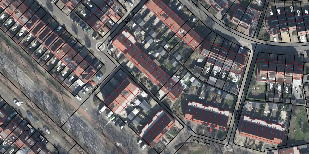 Het perceel waarop Rosmolen 31 staat heeft een oppervlakte van 2310 m². Dit is een zeer groot perceel. De perceeloppervlakte wordt geregistreerd door het Kadaster. Gedetailleerde informatie over de maten van dit perceel kunt u vinden in het rapport Kadastrale kaart met maatvoering van Rosmolen 31.
